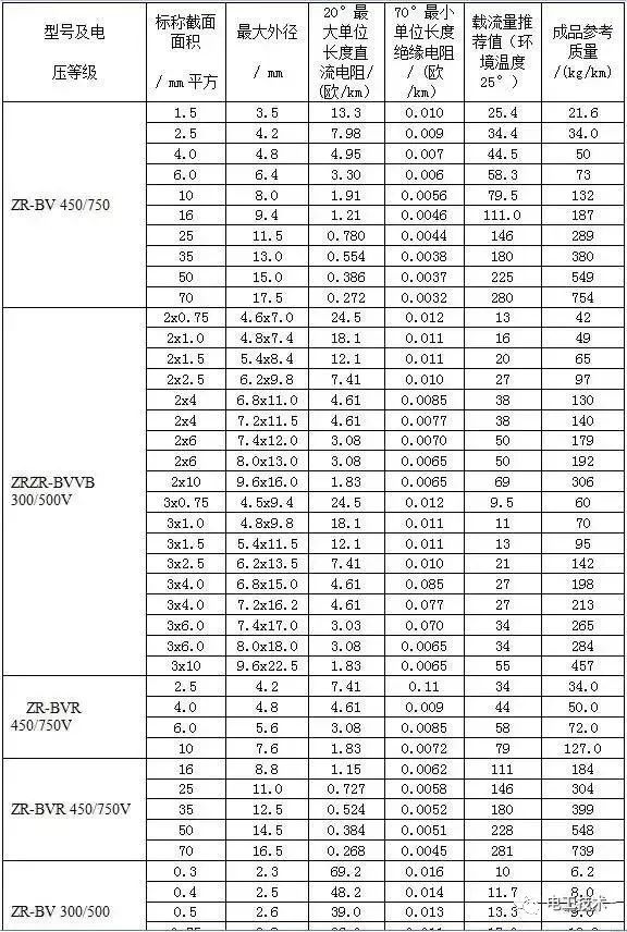 阻燃電線電纜載流量表 常見BV、BVVB、BVR、RVV、RVS系列阻燃電線電纜的載流量:
